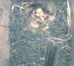 On her return following her last trip out, she checks that none of the chicks have started hatching - some hope yet awhile!