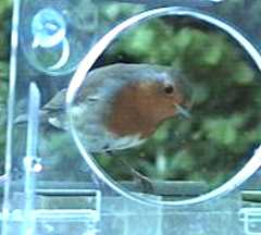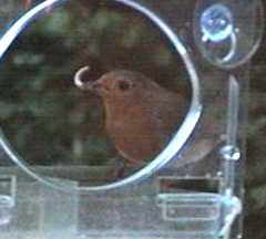 One of the robins comes each evening, very late. He gets personal service that way, with no interference from bluetits and sparrows who all go to sleep comparatively early. The sequence below starts at about eight o'clock in the evening.