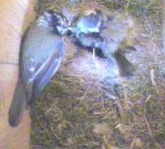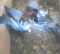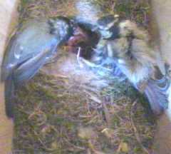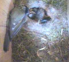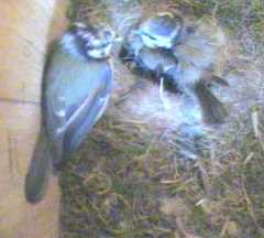 Flash is passing some food for the chicks to Fluffy to feed to them.
