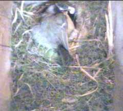 A day of high excitement as Fantail's eggs start to hatch! It all started at about a quarter to nine, when we noticed that Fantail seemed to be delving around at the bottom of the nest for ages. We soon discovered why!
