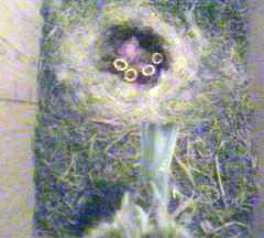 While all this excitement has been going on in Box1, Fluffy has been looking after her five chicks in Box2.