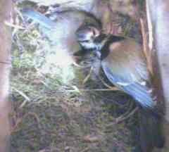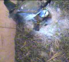 There was another funny incident that happened in Box2 during the morning. We have mentioned the battle of wills that sometimes takes place when Flash wants to feed the chicks himself. Well this time Fluffy wouldn't budge and stayed stuck to the nest. In the end Flash gave way and passed his food to her to give to the chicks.