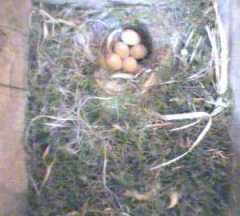 The day started wet and windy, became brighter in the early afternoon but then rain returned in the early evening. We think our birds must have seen the forecasts as their egg laying seems to have come to a full stop. Fluffy could be seen first thing still to have only five eggs, and it later transpired that Fantail was also stuck on five.