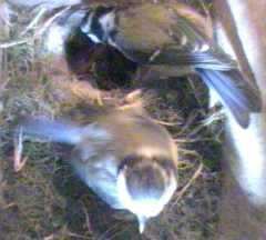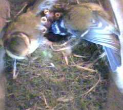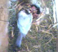 Fred has just pushed Fantail off the nest so that he can feed the chicks himself!