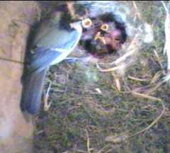 Fantail hears Fred coming and gets off the nest. Fred then feeds the chicks.