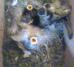 Fantail's six (one at the bottom has its beak closed) and Fluffy's five