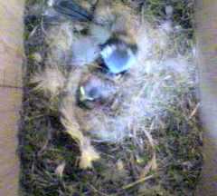 Flash is getting to be a real bully. If he is hungry when mealworm are put into the feeder, he stays on the feeder eating mealworms and chasing away not only other bluetits but also robins! Occasionally a robin does sneak in and pinch one but they don't stop on the feeder while Flash is there. He is also losing most of his top head feathers, as many bluetits do at this time of year, which adds to his already fearsome appearance!