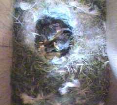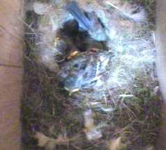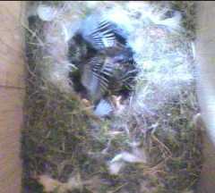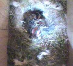 On the right, Fantail's delving has almost ejected a chick from the nest cup!