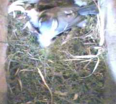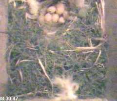 A dry day, but with lots of cloud and a cold biting wind. However, this did not put off Fantail who has laid another egg, making six to date. Fluffy's clutch is still only five.