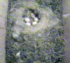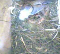 Fantail keeps bringing in this downy material. It is not clear whether it is a feather or something else. Having got it, she doesn't seem quite sure what to do with it and it usually ends up blowing about the place for a time before getting lost among the general detritus in the nest.