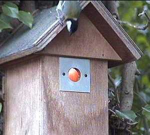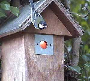 The great tit is apparently inspecting what is inside the box. In these circumstances, the fact that our bluetits are used to the light must be an advantage. It must seem strange, and a bit off putting, to a bird looking at the box for the first time.