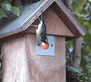 We have noticed a great tit taking an interest in this nest box a couple of times before. Here it is again.