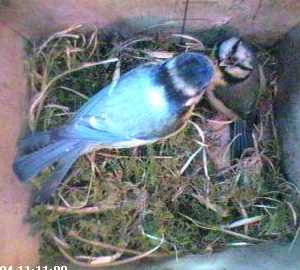 This is the first time we have seen either of the males come into the box when the female is already there. Normally both males carefully check their box is empty before entering. If by chance they enter and find the female already present, they leave immediately.