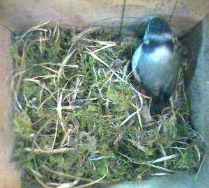 The sequence starts with Fantail worrying away at the spot on the wall of her nest box as usual. She seems to be spending an increasing amount of her time in this activity!