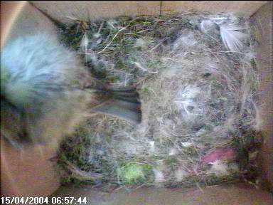 She was fussing around in the nest, but generally not moving off it and I was beginning to think that she might have laid her first egg when she moved off the nest cup and left the box.
