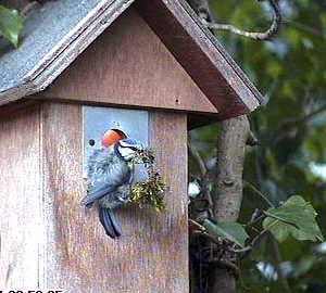 Another huge beakful. Fluffy's ideas are bigger than her nest's entrance hole.
