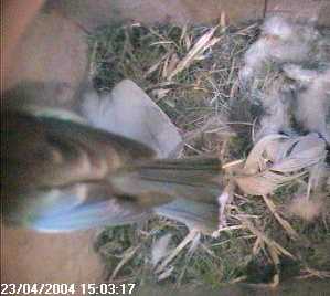 This is the last recorded image we have of Fantail. She is leaving the nest as usual just after 3 o'clock on Friday 23rd.