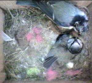 This is the last picture in this sequence. It is now 15 seconds since the first image and Barney is still pressing. However, he then suddenly gives up and leaves the nest.
