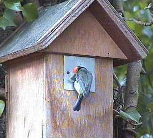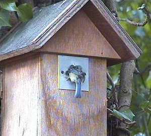 Sometimes she leaves quite soon after Barney, sometimes she stays for longer and appears to be inspecting the nest box or sitting on the nest box hole looking outside.
