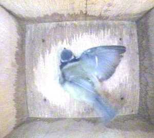 Last year Fluffy's partner, Flash, did a runner about four days before her chicks fledged. With great guts and lots of hard work (and a bit of help in the shape of lots of mealworms from us) the chicks fledged on time.