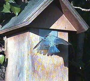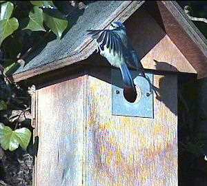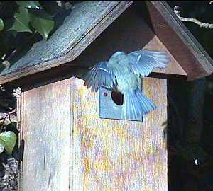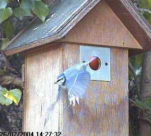 Here's Barney once more, coming in to land on the entrance hole. He never flies straight in as Fluffy does.