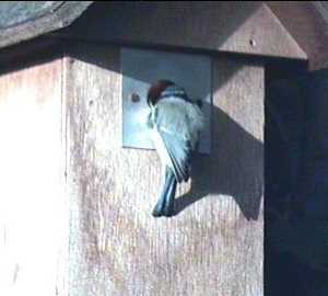 ... and here you can see her beak from inside the box. But still she does not enter. Barney leaves almost immediately after. He went so quickly that we didn't manage to catch him on his way.