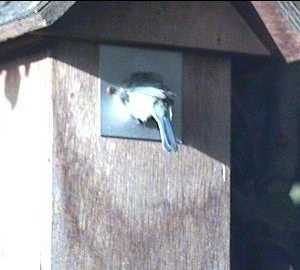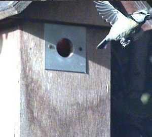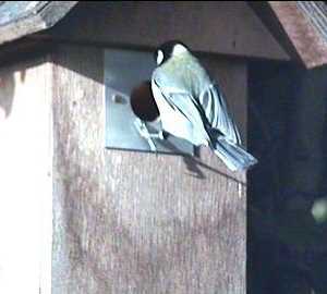 Here - what's a great tit taking an interest in this box for? Can't he see the hole is too small for him?