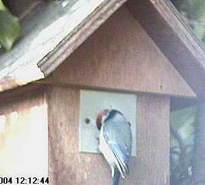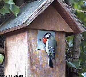 Here Barney does an exit and an immediate turn about to land back on the nest box hole!