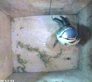 Fantail appears obsessed with a mark on the nest box wall at this point. She keeps coming back to it and pecking it or pulling at it. Nice fan tail display too!