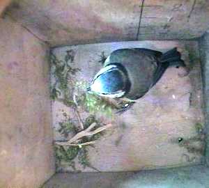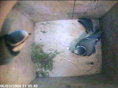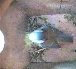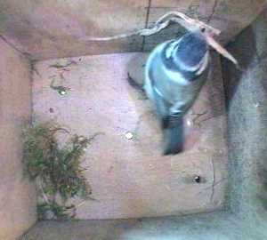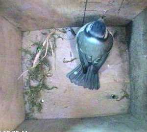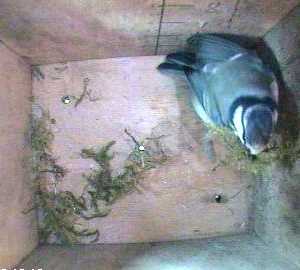 Here she is picking the moss up again in order to move it around the nest. All these habits seem to be preparations for the big nest building event that starts in about a month's time.
