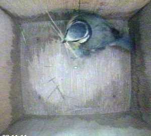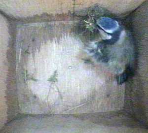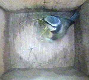 Today, for the first time, we saw Fluffy bringing some nesting material into her nest box.