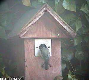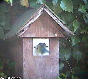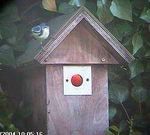 Within about 5 seconds, another bluetit appeared on the roof of the box. As was clear later, this was the female.