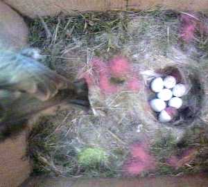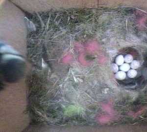 Here we see Fluffy returning at 5 minutes to 8. All the eggs look in one piece.