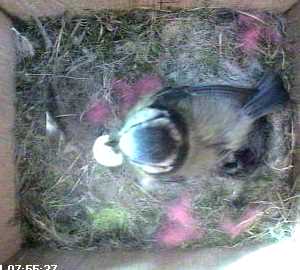 Why do some bluetits eat the eggshell and others dispose of it this way?