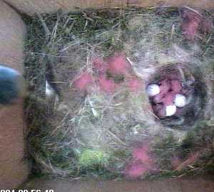 It is now just before 9 o'clock and there seem to be only three unhatched eggs left - and presumably four chicks! It is difficult to distinguish one pink blob from another when they are so young.