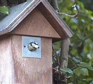 This is Barney again. The poor boy has lost most of the feathers on his head. Many male bluetits seem to do this and I can only think it is as a result of the hormonal changes occurring during the breeding period.