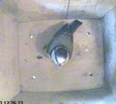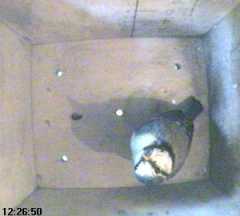 This picture was taken soon after she entered the box. I am saying 'she' although at this stage there is no proof that this bird is female. In fact, as can be seen from other pictures taken on this visit, this bird's neck band is wider than that of most females.