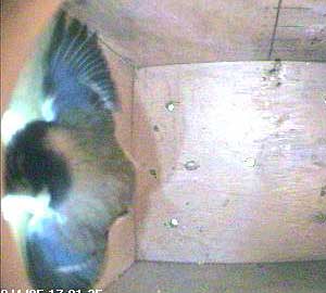This is Carlos's second try - and still Megan isn't interested. She looks into the nest box at Carlos - not today José!
