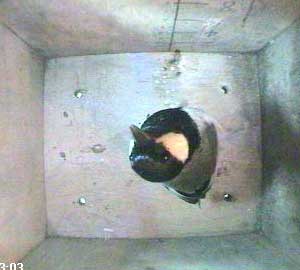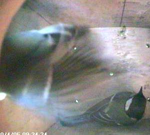At 9.34, while the male was still inside, the female came to the box for the first time.