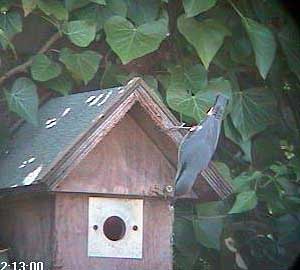 This nuthatch has given us the once over a couple of times before. I thought it must be getting late for it to be still investigating nesting sites, but Elizabeth checked in one of her reference books and nuthatches don't start nesting until the end of April. Anyway, the hole is too small for a nuthatch whenever they start nesting!