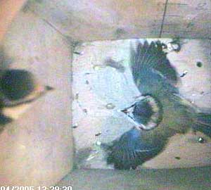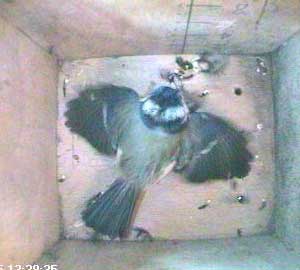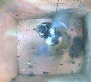 Carlos has fluffed his feathers up and looks quite a fearsome bird. As well as having his wings outstretched, his head feathers look as though they are standing on end. Overall, he looks most impressive!