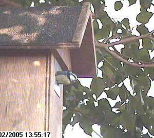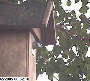 Unfortunately, masking off the leaves will also prevent the camera from taking pictures of our birds flying in that area. Perhaps I will experiment again with turning the box a bit more towards the camera.