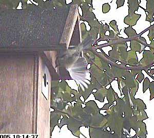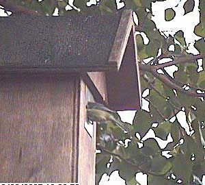 Just to show you that we have had a visitor, here is a picture of it leaving the nest box!