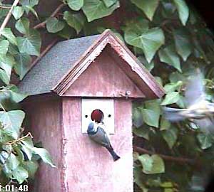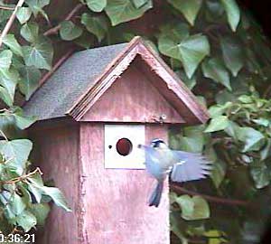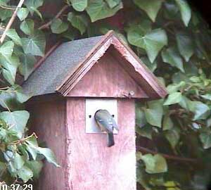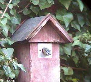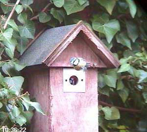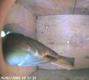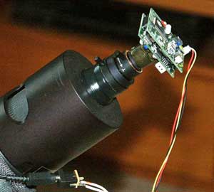 The miniature camera has two small logic boards and is taped to an optical filter that screws into the digiscoping adapter that I normally use with my Nikon Coolpix 4500. The only tricky bit is to get the focussing right as you cannot see through the 'scope at the same time as the camera! As the images the camera produces are shown on my PC in the study, I have to twiddle the knobs on the camera and then go into the study to see what effect this has produced - and then go back to the living room to make another adjustment etc!