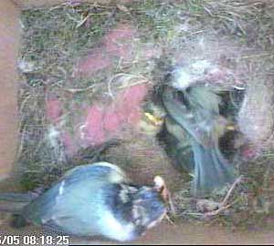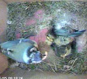 Time is passing and we have just realised that in about 4 or 5 days our bluetit chicks will be gone. They are growing rapidly and are developing proper wing feathers as well as the blue and grey down that covers them. But before we show you their feathers, here is a dilemma for a busy dad.