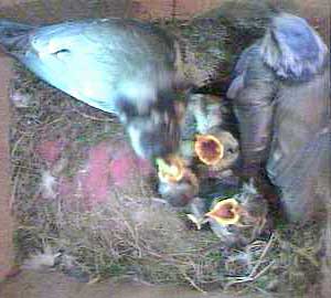 Boris is feeding one of the chicks a little green caterpillar while Kelly looks on in a rather bored fashion.