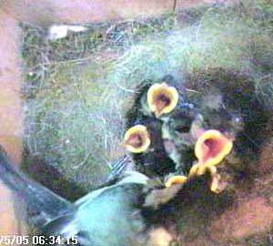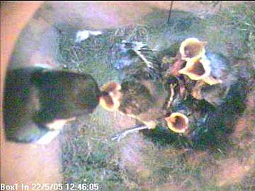 This shows Babe feeding the chicks at about half past six yesterday morning.