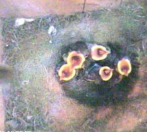 They are certainly eager feeders though. Here Babe doesn't even come fully into the nest to feed one of her chicks.