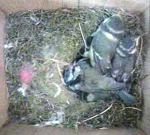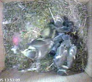 Babe's chicks all looked as though they were doing well and as she only laid 5 eggs, which all hatched out and survived the first critical days, we expected all to fledge. This morning we realised that we could only see four chicks - were we missing something obvious? Looking back at the stored images, it is clear that there were 5 vigorous chicks at the start of yesterday