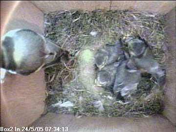 ... and Babe still has her four remaining great tit chicks - that's a relief then!